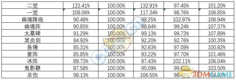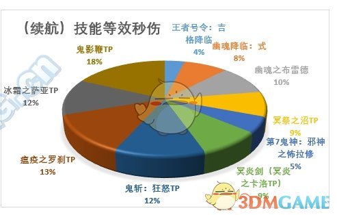 图4是鬼泣春节更新后的技能百分比数据(一二觉幽魂砍9% 卡洛砍16.7% 冰紫阵砍15%),同时yy了TP改版后大墓碑TP的数据。