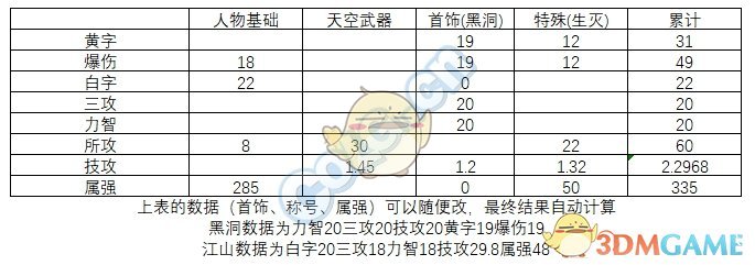 图3是人物基础属性,和首饰特殊装备的固定提升(关于首饰的分析后面有,稍安勿躁)