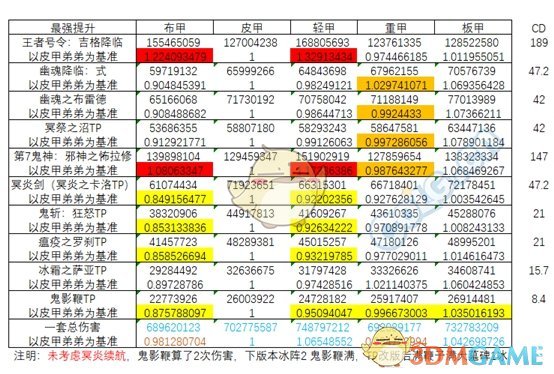 1.首先声明,只计算了鬼泣爆发向数据,因此没考虑冥炎的续航能力,如果考虑那么皮甲的伤害会更高一点,毕竟5级冥炎。