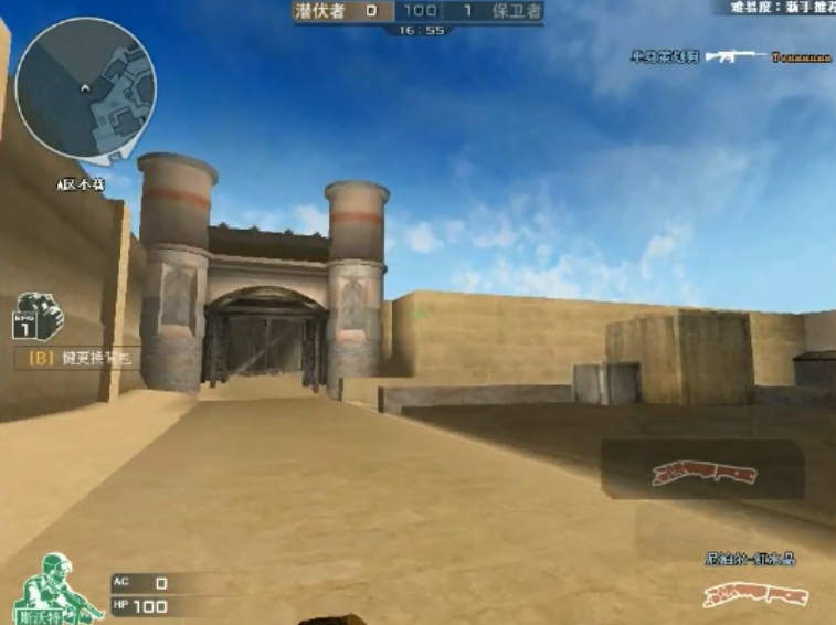 刚出B门向左望去,这里的风景与CS并无两样,小编严重怀疑这是照搬过来的,还好后来公测的时候优化成了墙壁。从下图我们可以看到,地下的沙子是那么明显,B包外面的墙壁看起来也是用砖块垒的。