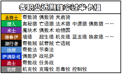 我们在近期会看到很多强度不错,且天敌较少的构筑形式,比如组合牧(包括机克牧、翻转牧等)、天启骑、突袭战等等,也会看到一些专门克制型的构筑形式,比如节奏法、偶数萨等,这些构筑形式往往兼顾有胜率和天梯克制的考虑,剩下的就是玩家通过自己所在的段位和环境进行调整。