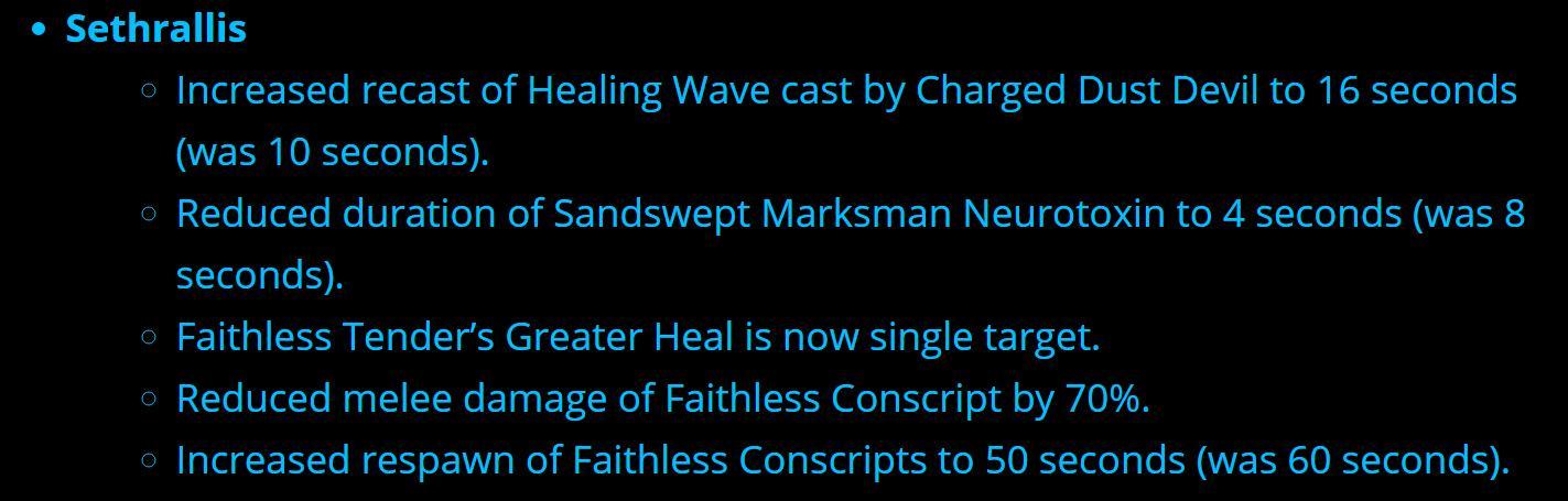 延长充能的沙尘恶魔的治疗波再次施放时间延到16秒(原为10秒)。 p