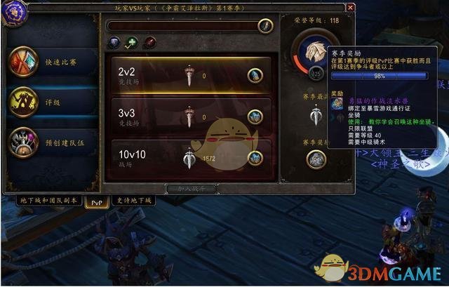 PVP第一赛季的奖励坐骑联盟为勇猛的作战淡水兽,部落为勇猛的作战裂蹄牛,这两个可以都是赛季唯一坐骑,想拿坐骑的小伙伴千万不要错过时机。