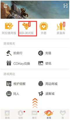 如何找到组队打团测试版功能?