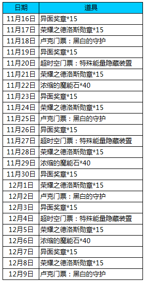异面奖章105个、荣耀之德洛斯勋章105个、卢克门票4张、超时空门票3张、浓缩的魔能石120个!