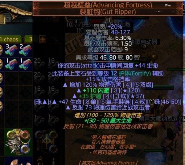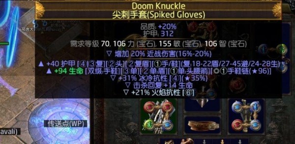 腰带、戒指、项链都要高血高抗,最好有高武器元素伤,因为本bd缺敏捷所以首饰上必须有50左右的敏捷