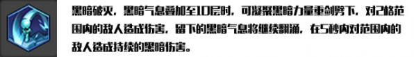 输出循环为:虚空斩冲向敌人,血之渴望卡CD使用,之后持续使用虚空斩,当黑暗气息叠加至10层时,使用黑暗破灭,如此循环。如需爆发,在黑暗破灭释放前开启血祭即可,如此循环。