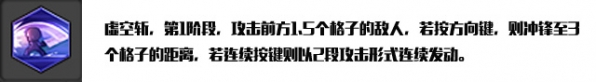 横扫千军:主要输出技能之一,在其他主要输出技能CD时使用,因为技能具有连贯性,可在SP充足的情况下使用。