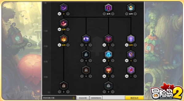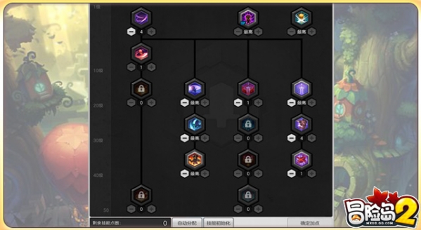 50级推荐技能加点如图所示,之后优先考虑加满血祭,然后再考虑血之渴望或者是出血的被动(红色箭头标出)