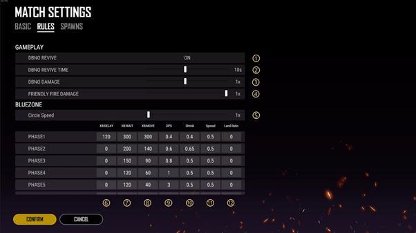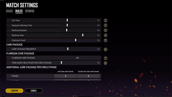 轰炸区的范围、时长、频率等以往随机设定也是可以设置的。我们可以将轰炸区的设置适当调高,然后大家进入游戏一起欢快地在轰炸区里愉快(自求多福)的奔跑吧!
