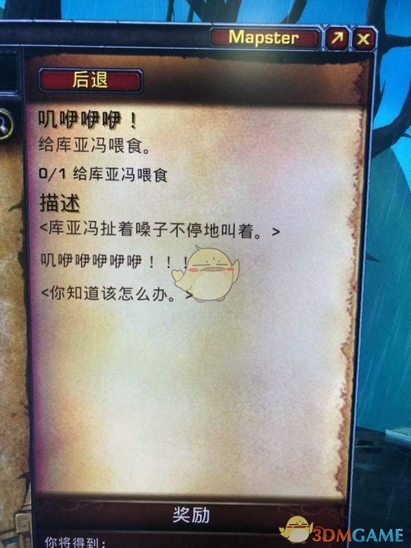 几番对话之后帕库大神会让你去战兽栏找NPC护龙者(高亮显示)拿食物喂小龙库亚玛。