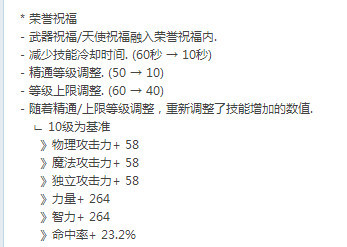可以说把加3攻的BUFF加到了荣誉祝福里,减少了2大祝福!就像奶妈的勇气祝福一样了,可以说现在的奶爸可以和奶妈一样输出和BUFF兼得,在这方面来说确实节省了不少SP!但是细细品味的话大家就知道现在的奶爸可以说是削弱了!因为还有最重要的一点,那就是新加了一个技能: