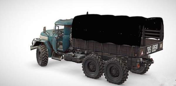曝光的新载具是一款6轮大卡车,前半部分是蓝色的车头,后半部分车厢上罩着黑色的布。可以看到后面车厢的容量非常大,加上驾驶员,感觉这个大卡车至少能装载10个人左右。