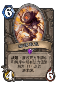 这张卡主要针对德鲁伊,只要用恶鬼把平衡销毁,蜘蛛就没办法一回合触发亡语,然后……我们的精神控制就可以嘿嘿嘿了,直接摧毁了德鲁伊的核心,即便我们手中的蜘蛛亡语不强,但废了德鲁伊的后期能力,直接就赢了,蜘蛛亡语的收益,已经无所谓的。而且这张卡在打其他控制卡组的时候,也多多少少可以摧毁一些卡,赚一点节奏。