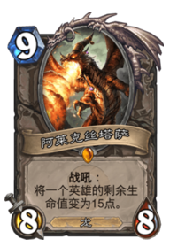 这张卡5费7/6拥有6费的身材,非常暴躁,缺点就是卡自己随从费用,而对于我们这套牌。功能在于站场抢血或者压制,反正我们5费以后随从少,会被卡费的情况不多,大大降低了负面效果的影响,而对手如果不解,那么7攻教做人,配合震爆,节奏变得非常快。