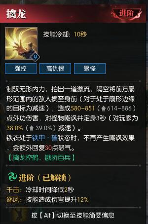 小技巧:为了提高命中率,一般选择在力劈或者擒龙之后释放,控住了立马接爆发,很舒服。