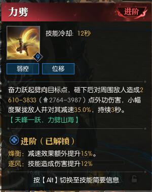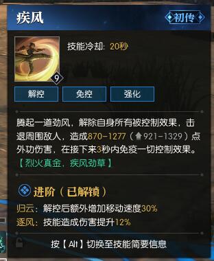 【疾风】唯一解控技能,附带3秒免控,9级进阶后还能提高3S移速,PVP必带。