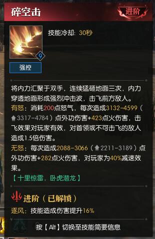 小技巧:1、首先,要确保有200怒气,因为碎空击这招,有怒和无怒完全是两个不同的技能,有怒的碎空击才有实战价值,所以这招基本只能作为终结技。