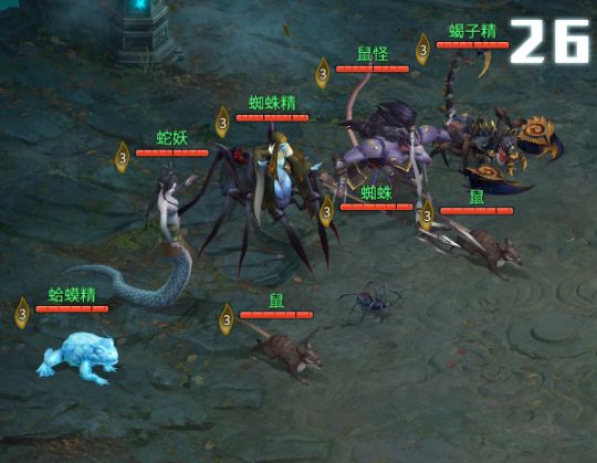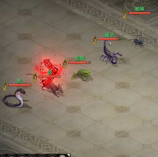 怪物:鼠怪、蝎子精、蜘蛛精、蛇妖、蛤蟆精、鼠*2、蜘蛛*1