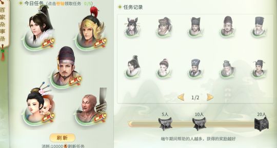 点击左侧人物头像领取任务,完成后会点亮右侧人物头像,同时当帮助过的人达到5个、10个、20个时可以领取额外的宝箱奖励。(每天限领五次)