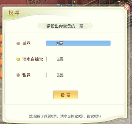 通过包粽子活动获得投票劵,使用投票券在长安城414,428小胖子处进行投票,最终票数更多更多的一方可获得相应口味的粽子奖励。