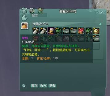 又是一个很有趣的道具,一次召唤5只骆驼,团队一人一只,跑速等于黄龙,但是天策骑骆驼不能施展马上技能,天策玩家慎重。不过也是跑路赶路的一个很好的工具。