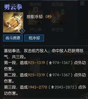 一个填补输出空隙与怒气获取的技能:劈云拳