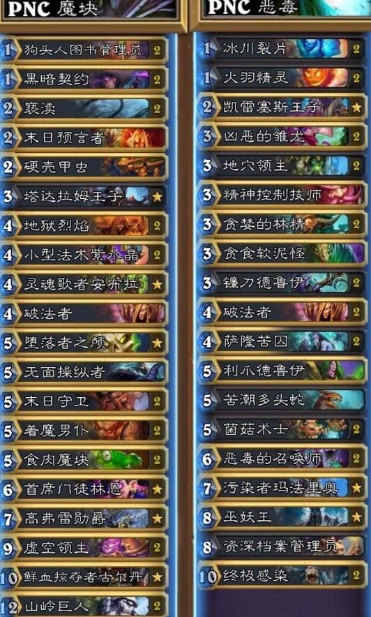 炉石传说美服HCT赛事已经结束,但赛事各种精彩对决依然让很多粉丝大饱眼福。其中PNC选手用了魔块、恶毒等卡组,那么这些卡组如何搭配呢?下面就跟小编一起来看看吧。