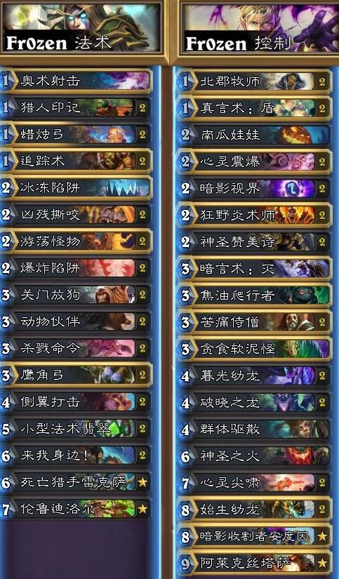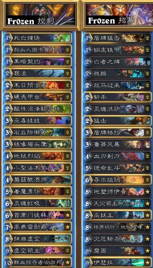 《炉石传说》美服HCT第一赛季预选赛Fr0zen卡组推荐