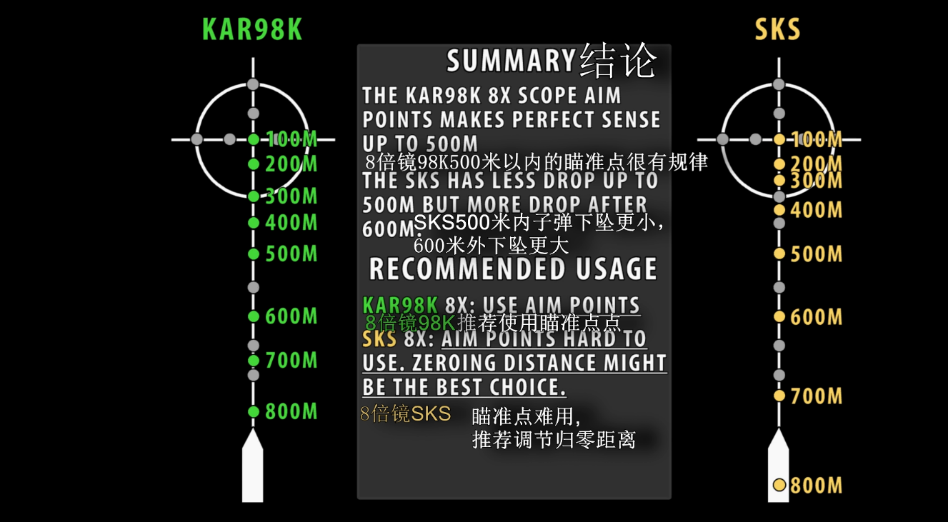 新版本的8倍镜对于新手玩家可能方便操作了,但是对于300m以上距离,玩家有的选择抬枪口,有的选择设置归零点,那种方式小伙伴最习惯,就选择哪种吧!