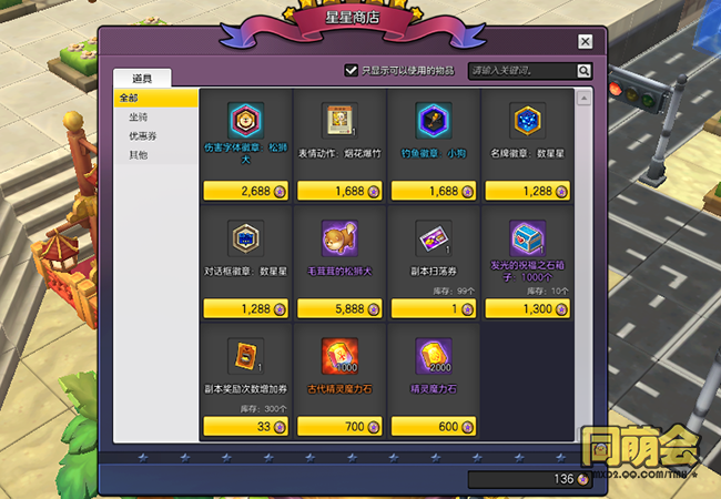 在商城消费蓝/红蘑菇币,将以10%返还星星点数,在游戏商城的右上角点击星星图标,可进入星星商店,消费星星点数兑换以下好礼,星星点数可在左上角的钱包中查看。