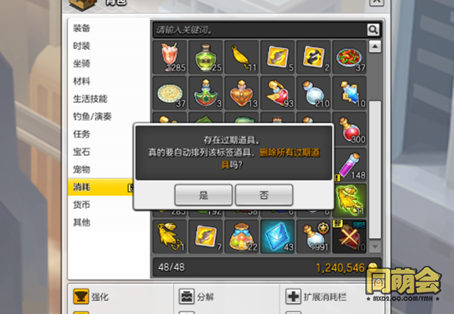 【优化二】:过期道具快速删除,点击背包内的自动整理可一键删除。