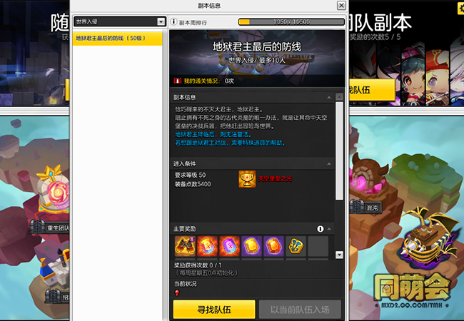 世界入侵副本要求比较高,需要达成天空堡垒之光成就。装备点数要求5400。而世界入侵这个副本背后的大首领是炎魔的父亲-地狱君主,该副本拿高评分较难。