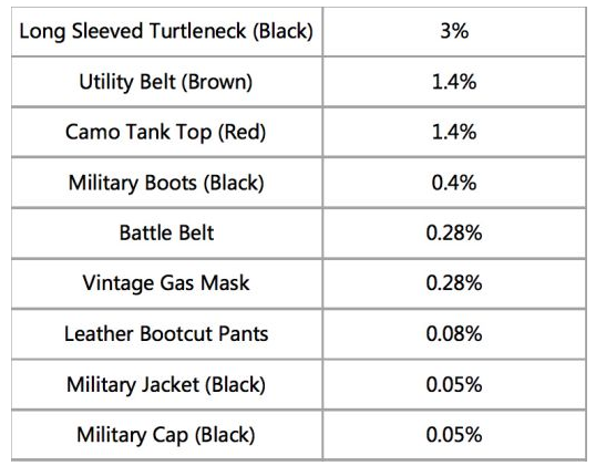 新免费箱子MILITIA内各道具概率如下: