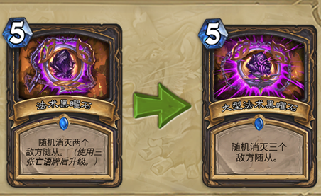 在炉石传说即将推出的狗头人版本中,有很多法术卡,每一种法术卡都有自己的独特用处。其中小型法术黑耀石是性价比较高的卡牌之一,作为盗贼法术卡,玩家可以对其进行升级。那么游戏里小型法术黑曜石有什么用呢?升级后又有什么变化?下面小编将带来炉石传说小型法术黑曜石的玩法,希望大家喜欢。