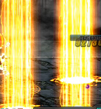 躲过左手这一波攻击后,要立刻跑到屏幕最上边,不能站在中间,中间会在随机位置喷出金黄色的电流,之后留意地面提示