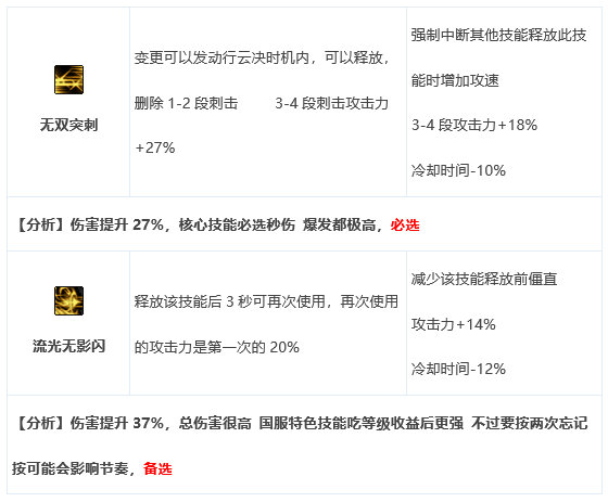 推荐佩戴优先级 无双突刺>烽火≈雷霆≈流光无影闪>升龙>三一>狂龙;