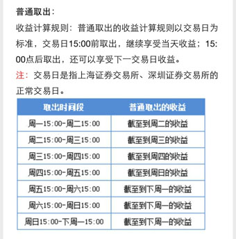 快速取出收益计算规则:不享受当天收益,收益计算截止到前一天。
