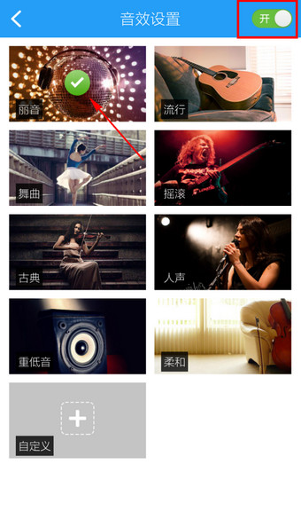 4、开启后,音效默认为【丽音】
