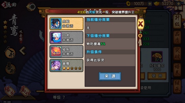 驭灵升级是驭灵培养中的核心部分。游戏中玩家主角等级提升的同时,驭灵的等级上限也随之提升。此时,给驭灵喂下开灵草(增加50经验)、添灵草(增加200经验)、益灵草(增加1000经验),便可提升驭灵等级。驭灵等级提升后,其基础属性也会有明显提升,对于玩家的实力增长,有很大的帮助。