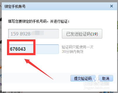 填写自己的手机号码,并发验证码填进去。