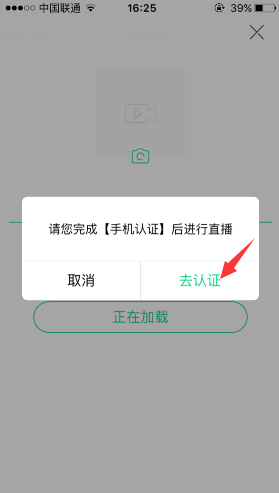 2、这个时候,系统会提示你需要完成手机认证后,才能够进行直播;