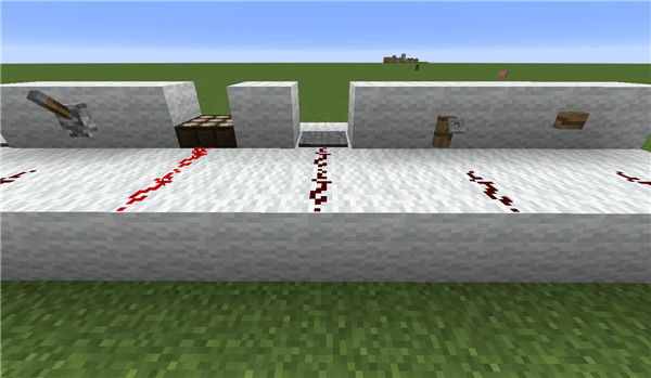 介绍完了中继器,下面让我们来笼统的介绍一下可以发送红石信号的方块。为了方便大家直观看到他们的样子,我将会在白色羊毛上放置这些方块。
