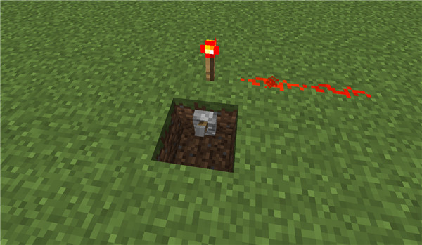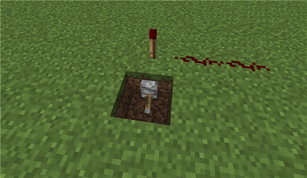 如图所示,与红石线相连的是我们要介绍的红石信号发生源。