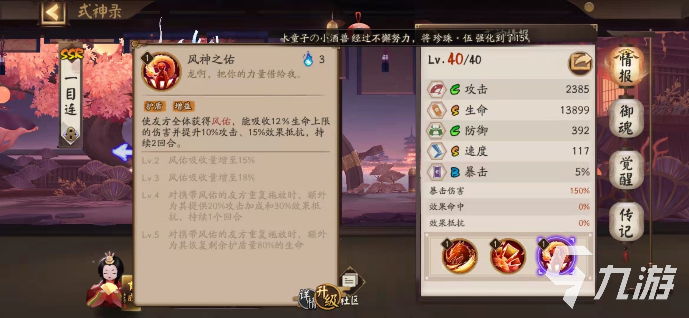 风神之佑:技能调整为使全体友方获得风佑,能吸收12%生命上限的伤害并提升10%攻击,15%的效果抵抗,持续2回合。技能升级效果调整为: