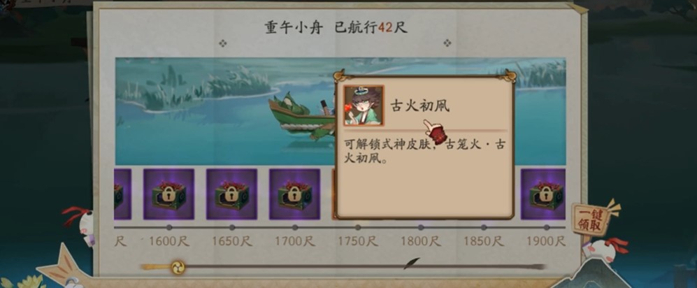 小船航行每过50尺可解锁一档奖励,重午宝匣奖励概率如下: