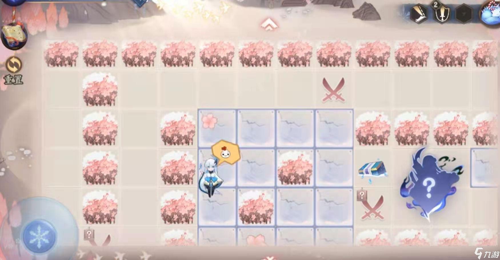 2.樱林关卡可以进行重置,在玩家重置之后就会回到起点位置,关卡中的各个事件任务都会刷新为初始样子,移动次数重置为0。