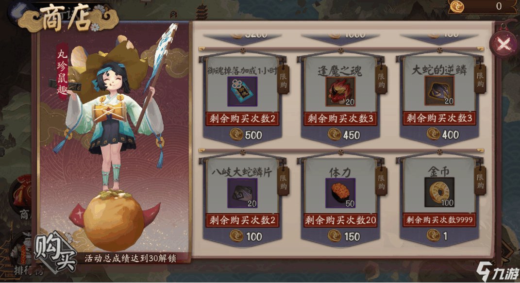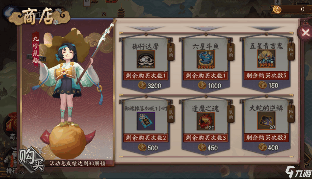 本期活动的商店奖励包括四星白蛋、蓝票、黑蛋、六星斗鱼结界卡、铁鼠新皮肤·丸珍鼠趣等,本期活动排行榜不设奖励,因此强烈推荐大家按着最低线混过就好,解锁商店全部奖励兑换资格需要7天解锁90级,也就是平均到每天通关13级突变即可。