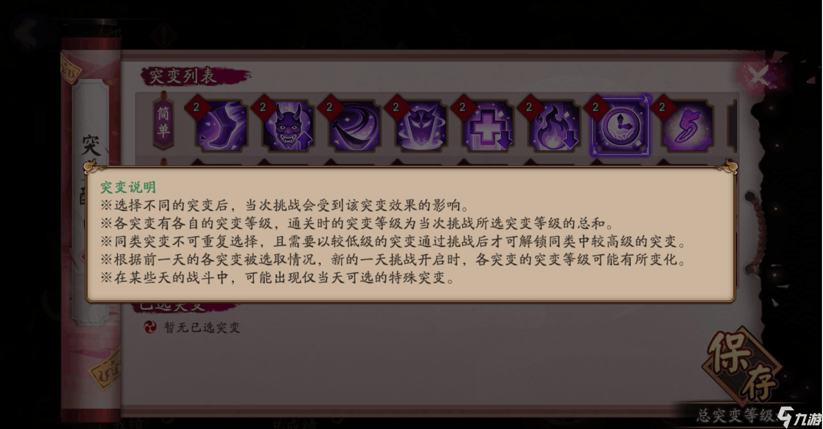 简单来说,突变就是tag,玩家需要在打副本之前自选tag,tag分为加强敌方属性和削减己方增益,要求玩家在保证击杀boss的情况下,尽量选择更多的tag,选的tag越多,对应的奖励也会越多。