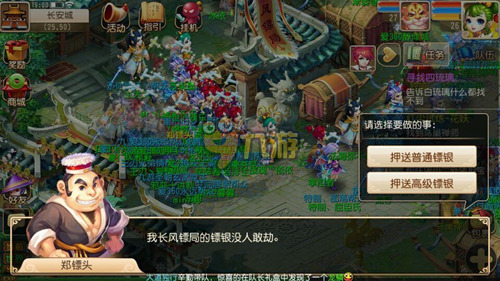 5、押镖。这就是最经典的一种赚钱方式,端游玩家前期完全是靠着一次又一次跑镖发财致富,长安城找郑镖头就好了。同样分为押送普通镖银和押送高级镖银,
